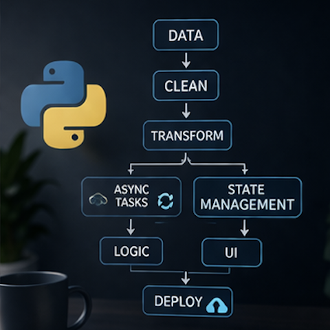 This free course is for computer science students who want to become internship- and interview-ready by building real Python applications. You’ll learn through interactive, visual apps where objects, lists, dictionaries, and event handlers drive visible behavior, and projects evolve from small scripts into structured applications you can extend. As you progress, you’ll apply industry-relevant patterns like state management, separation of concerns, async programming, and basic deployment workflows. In later chapters, you’ll build a real AI chat app using a local language model with streaming responses. By the end, you’ll have portfolio-ready projects you can demo, explain, and defend in technical interviews.
